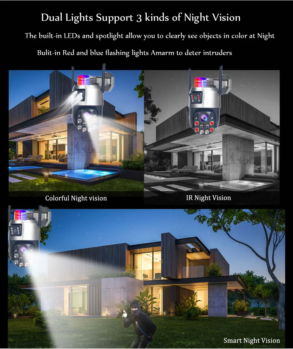 | Night Vision: | IR, colourful, smart night vision |